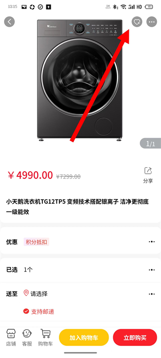 5、在商品详情页后,点击收藏图标,完成收藏。