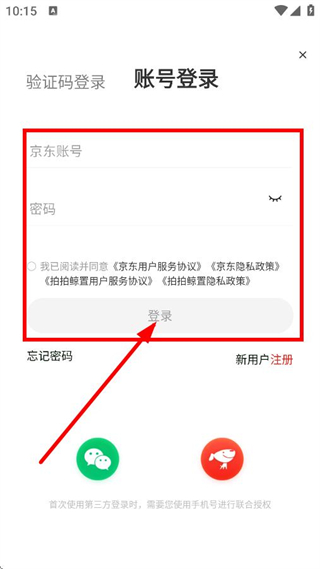 4、在账号登录页面,输入京东账号和密码,点击登录,完成登录操作。