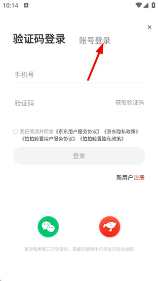 3、在登录方式选择页面,点击账号登录,进入账号登录页面。