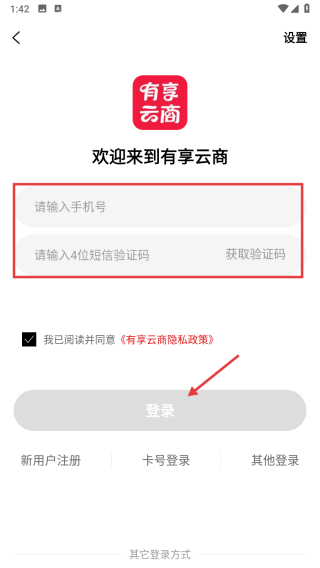 4、输入手机号和短信验证码,勾选协议后点击登录按钮,完成账号登录操作。