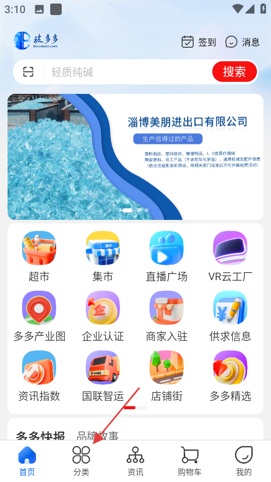1、在首页,点击底部的分类按钮,进入分类页面。