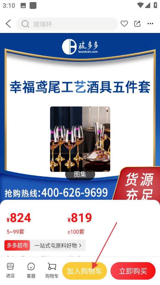 3、点击想要查看的商品,如幸福鸢尾工艺酒具五件套,进入商品详情页。