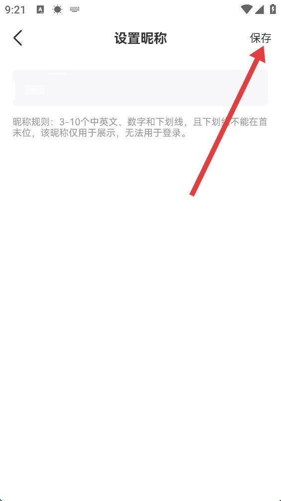 4、输入新昵称,点击右上角保存按钮,完成昵称更改。