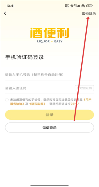 3、在登录页面中点击“密码登录”,切换到密码登录模式。