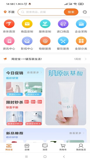 网定宝是一款多元一体化购物软件,聚集了衣食住行所有的服务,非常实用的app,商城内各大优质商品供用户挑选,只要你下单,不管任何商品,全部包邮送到家,所有服务项目都有优惠券,保证用户在这里能够省钱生活,真的是非常贴心又好用的app,你还在等什么呢,赶紧点击下载吧。