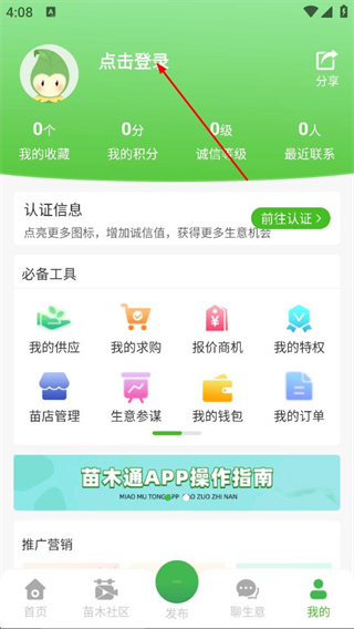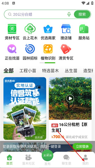 1、在苗木通APP首页,点击底部我的,进入个人中心页面。