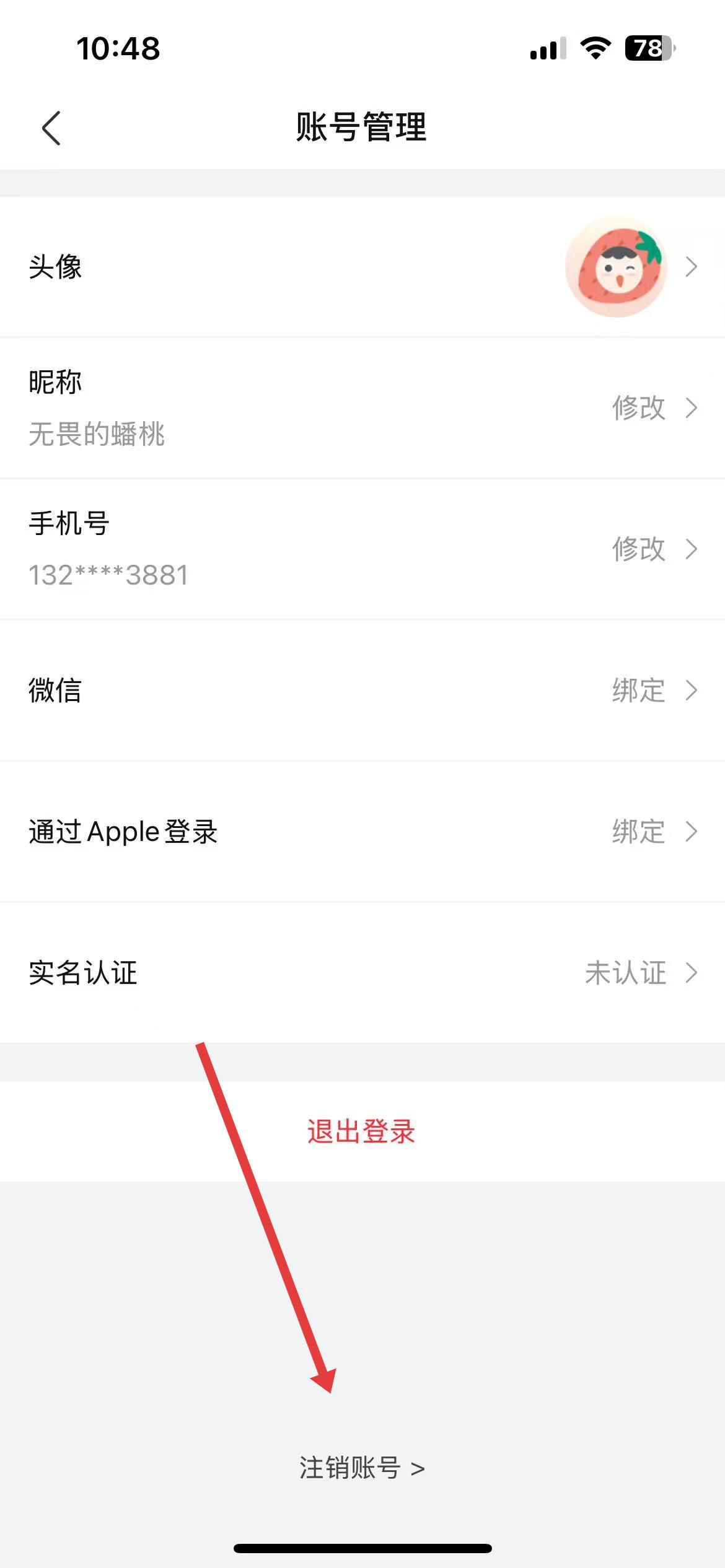 2、在账号管理页面下滑至底部,点击注销账号选项,需注意注销前要确认满足相关条件,比如无未完成订单、无投诉举报等。