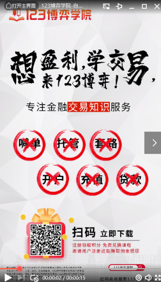 123博弈学院是一款金融行业的职业教育app,在这里有非常多的金融行业的专业知识,帮助想要学习金融行业专业知识的热或者是想要走进这个行业的人学习到更多的专业知识。大连高的专业教学视频能够在线看,还有各大金融名师发布的教学贴,全都是金融行业的精华。