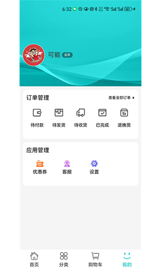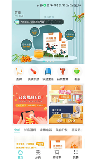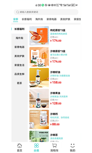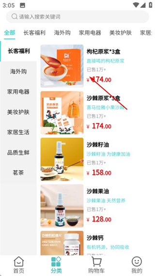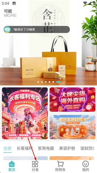 1、在可能首页点击分类选项,进入商品分类列表页面。