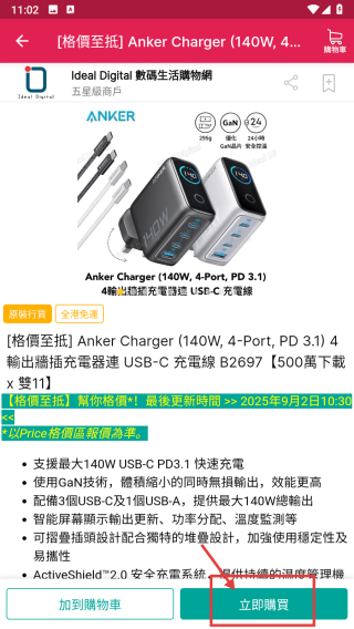3、在价格至抵商品列表里,选择Anker-Charger条目,进入商品详情页。