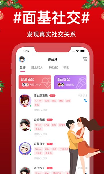 待会见给用户带来趣味的交友乐趣,该平台创新的社交方式不仅丰富了用户的交友体验,还满足了年轻人在社交需求上的多样化,让用户轻松实现线上交流和线下见面的双重乐趣。特色的语音个性的好听的颜值超高的小姐姐小哥哥等你来越,智能推荐给你超多惊喜,带你尽情的畅聊面基非常的趣味,喜欢交友的的用户就来下载试试吧!