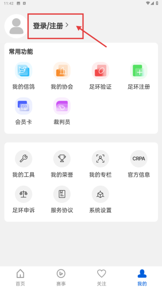 2、在个人中心,点击登录/注册选项,进入账号操作界面。