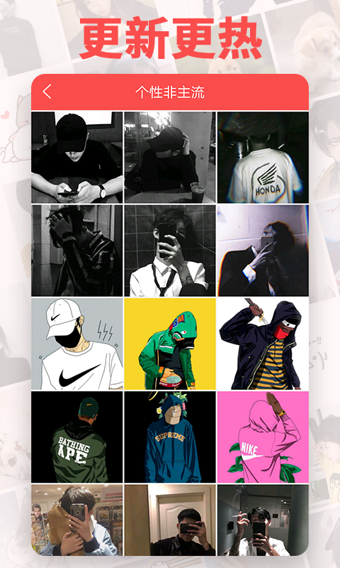 4、大量精美的女生头像,男生头像,情侣头像,动漫头像,卡通头像,可爱头像,唯美头像和非主流头像,是80后、90后和00后更换头像的app!