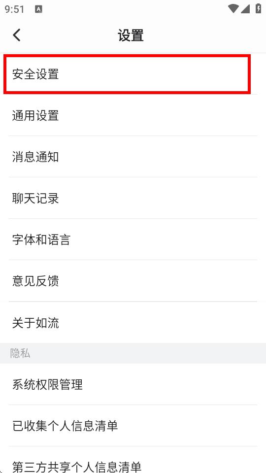 2、在设置界面中,点击安全设置。