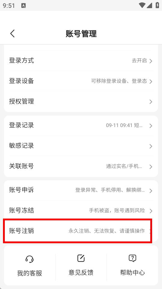 4、在账号管理页面,点击账号注销,按照页面提示完成身份验证等相关操作后,即可注销账号。