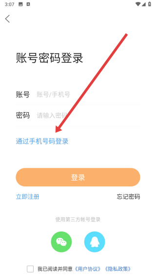2、在进入到登录页面中,可以点击通过手机号码登录按钮,进行登录。