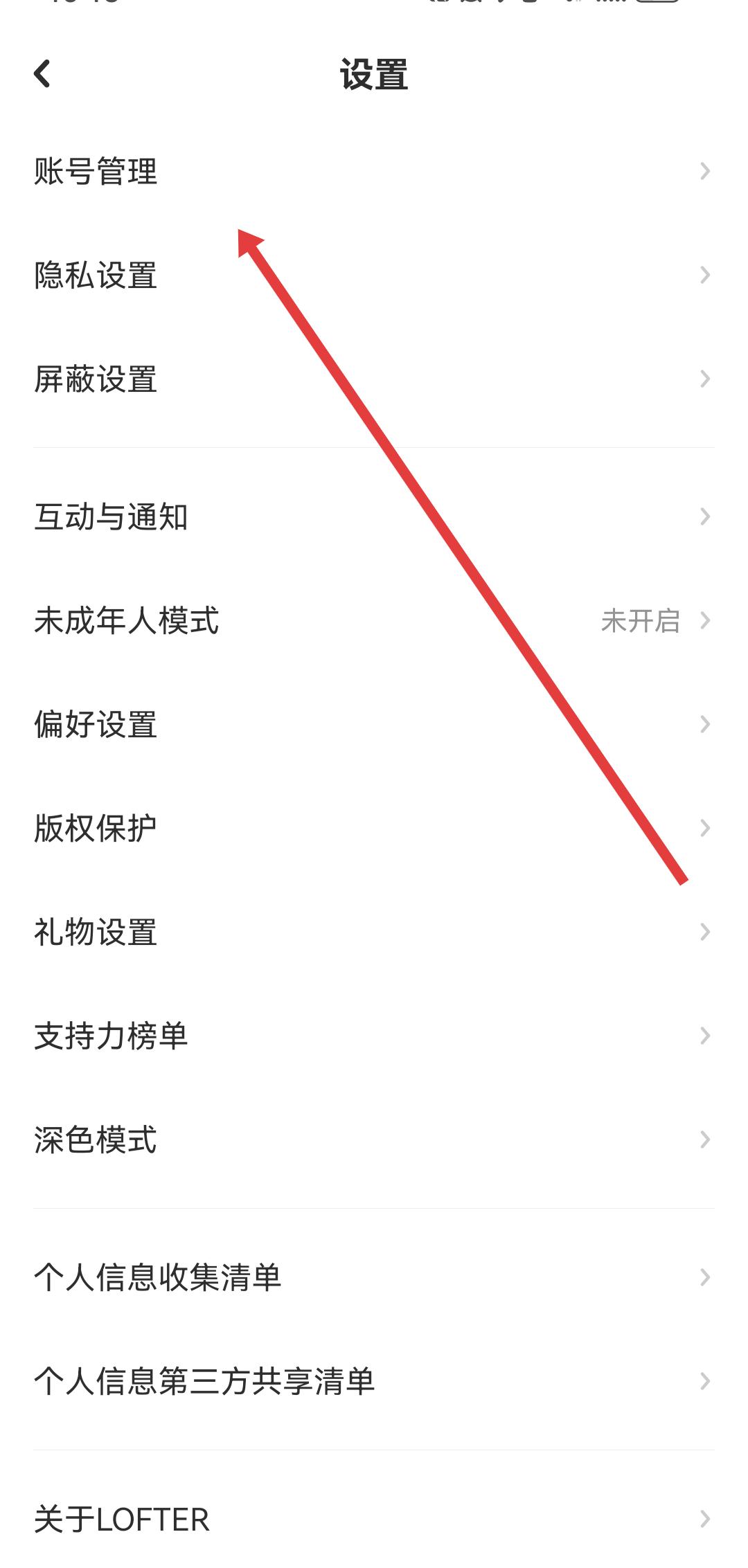 2、然后我们需要在个人账号设置的页面中,找到并点击账号管理的选项,进入账号管理的界面。