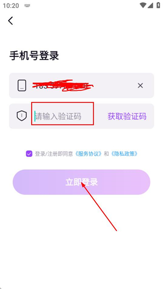3、在手机号登录页面填写验证码后,点击立即登录完成账号登录操作。