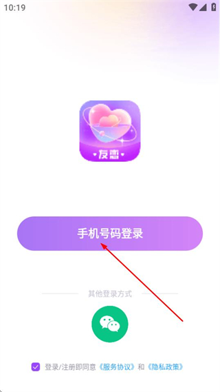 1、在友恋登录选择页面点击手机号码登录,进入手机号登录页面。