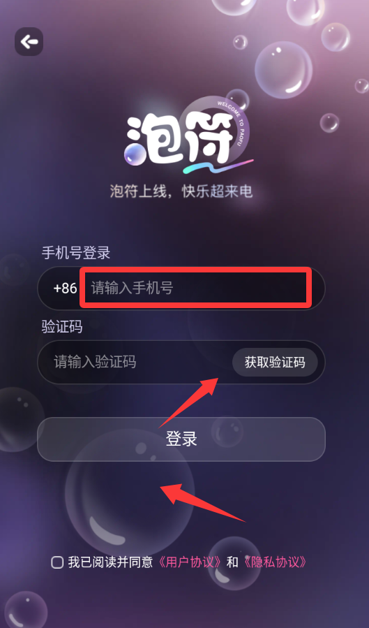 3、输入手机号码获取验证码然后登录。
