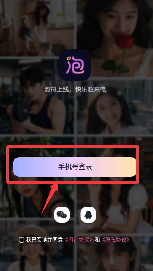 2、点击红色框框里的手机号登录。