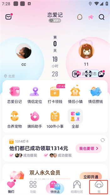 在恋爱记中你们可以共同记录每一天的恋爱时光、蜜语聊天互动