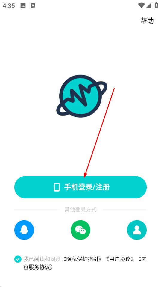 1、打开应用,在登录页点击手机登录/注册按钮,进入手机号填写界面。