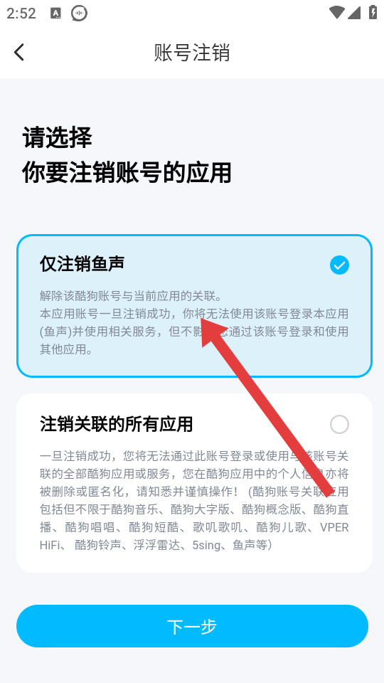 4、在界面选择要注销的应用范围,然后按照系统提示完成后续注销申请。