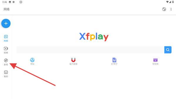 1、打开影音先锋App,在左侧菜单栏点击发现的图标选项。