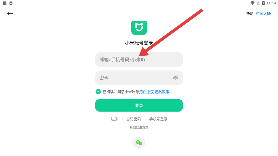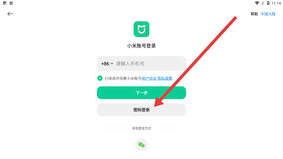 2、在登录界面中,可以点击密码登录按钮,切换为密码登录方式。