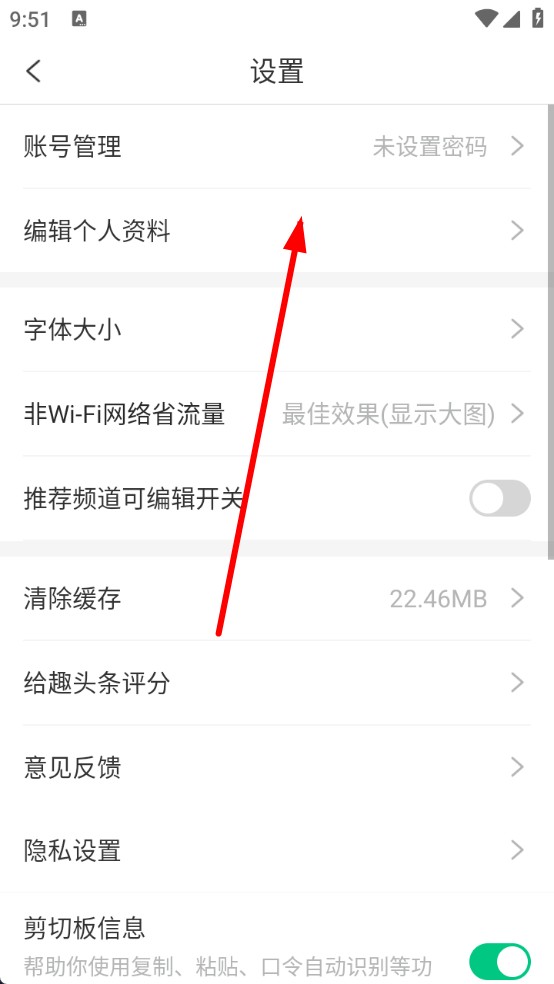 2、在设置页面中,点击编辑个人资料选项。