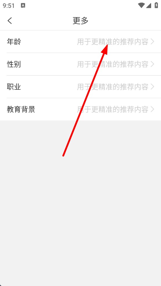 4、在更多页面里,点击年龄选项,输入自己的年龄,完成年龄设置。