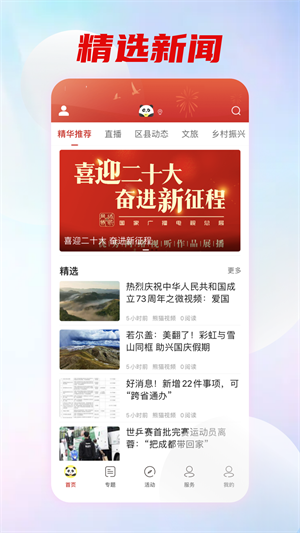 熊猫视频客户端是由四川广播电视台打造的手机视频在线播放平台,采用最新的流媒体技术,集成国内央视、省级卫视和四川地方电视台优质视频直播信号。24小时不间断高清直播,此外还有上万小时的精彩节目可供回放观看,内容涵盖新闻、综艺、娱乐、体育、热剧、电影等多种类型,满足用户全方位的内容需求。