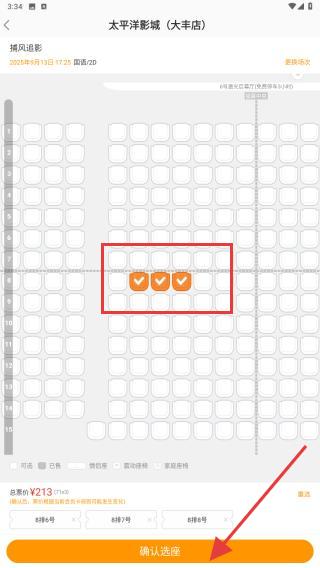 4、点击后,需要再次明确需要坐的位置,再点击确认选座即可完成。