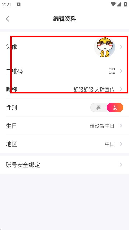 2、点击我的进入个人页面,点击头像区域,可进入编辑资料等相关操作页面。