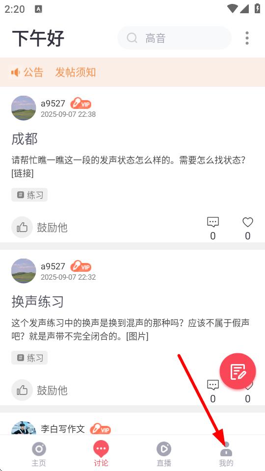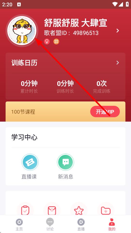 1、进入歌者盟学唱歌app,找到我的选项。