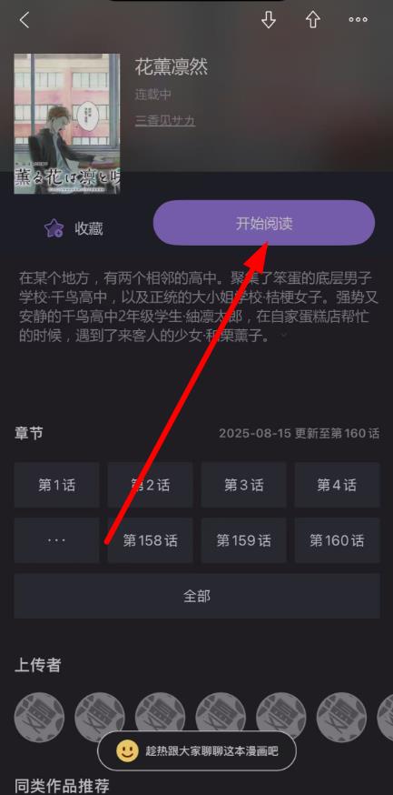 3、点击人气榜上感兴趣的漫画封面或名称,进入漫画详情页,再点击开始阅读按钮,就能阅读该漫画。
