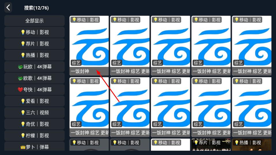 2、在热播综艺列表页面,选择一饭封神,进入搜索结果页面。