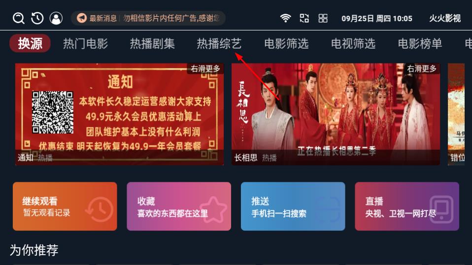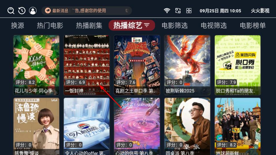 1、打开火火影视,点击热播综艺,进入热播综艺列表页面。