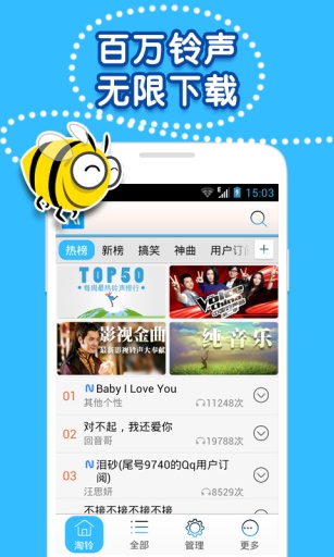 【天天有新铃】紧贴潮流,收纳时下最热、最新的歌曲铃声,还有搞笑、影视、DJ、动漫、短信铃声,乐趣无限!