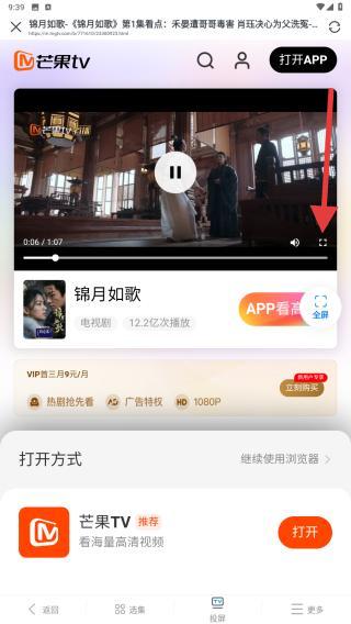 3、官方跳转继承平台画质、功能,第三方可能有广告或稳定性问题,不介意的用户可继续点击放大的按钮进行全屏观看。
