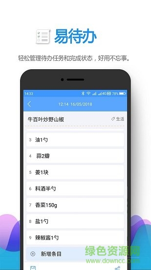 这是一款超好用的任务管理应用,帮助您管理待办任务,提升效率,避免遗忘。完成状态设置可以让您将已完成的条目设置为已完成的状态,区分未完成的部分,让您有条理地完成任务,不遗忘。