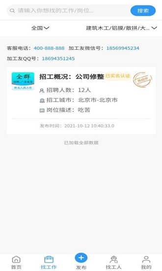 面向各行各业的招聘平台,实时的用工信息,海量的货运、生活服务、广告发布和查询,同时还有相关的人力成本和考勤管理。招聘、求职、找工作、货运信息、二手市场、广告发布等生活服务,覆盖所有城市,汇聚大量个人和商家需求信息。不用等待招聘会,没有中介;真实、高效的直接与老板和用人单位联系沟通。