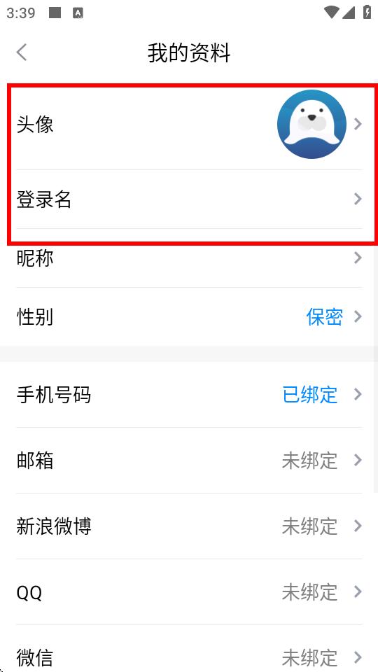 4、在我的资料页面,点击头像或登录名/昵称选项,按提示修改头像和昵称。