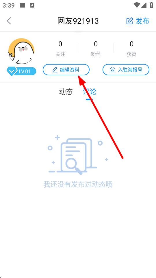 3、在个人主页里,点击编辑资料按钮,进入资料编辑页面。