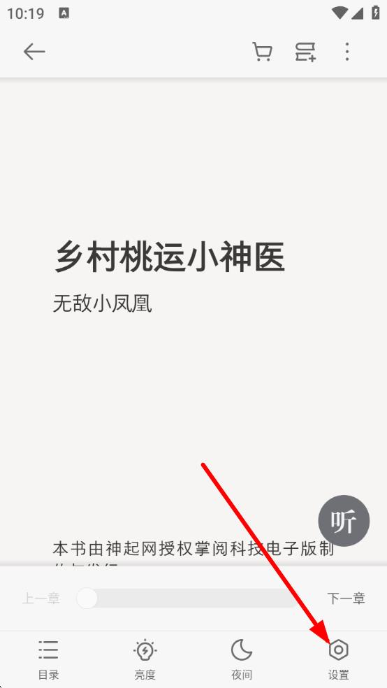 1、在掌阅阅读界面,点击右下角的设置图标进入设置菜单。