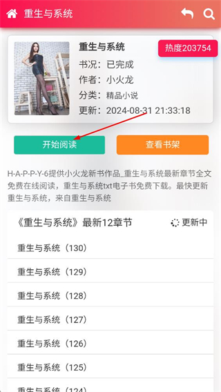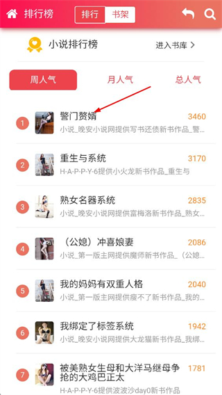 2、在排行榜页面,点击重生与系统,进入该小说的详情页面。