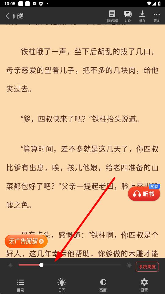 3、调整到合适亮度后,松开手指阅读界面就会以设置的亮度显示内容。
