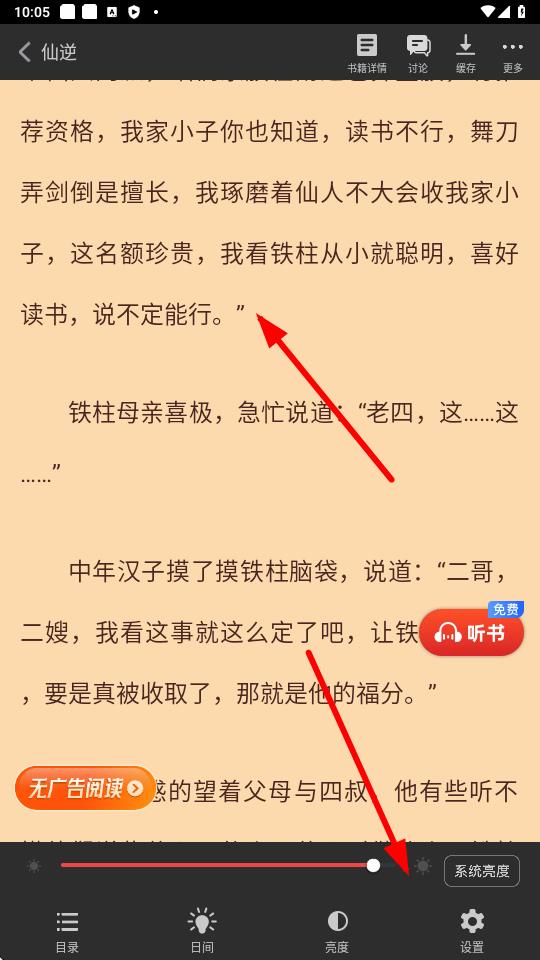 1、在追书神器app阅读界面,点击屏幕下方的亮度按钮。