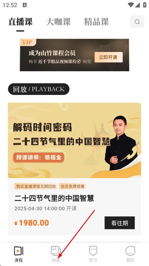 1、在课程页面,点击阅读,进入阅读页面。